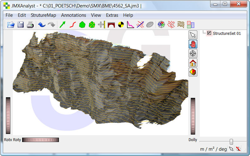 The result is a metric 3D image representing a dense three-dimensional survey of the rock surface.