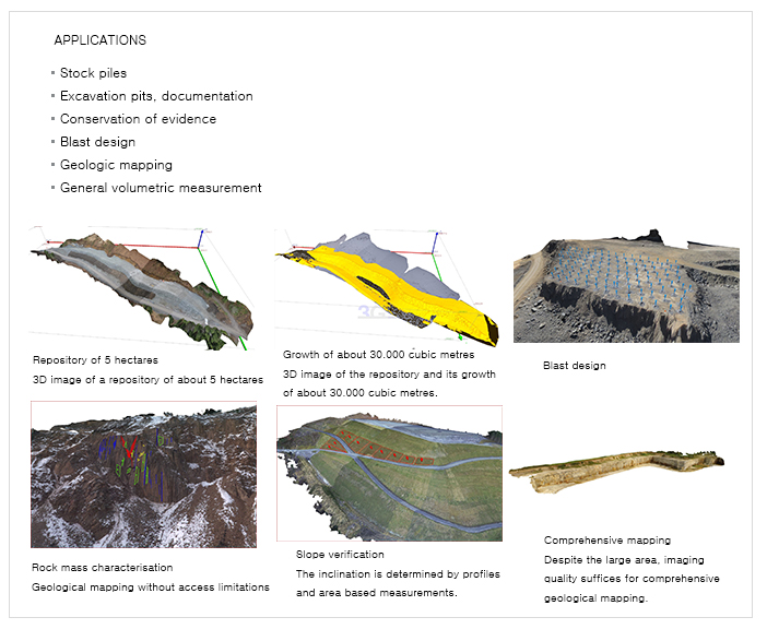 기반으로 경사단면 (bench face)측량과 발파 설계를 계획하는데 혁신적인
