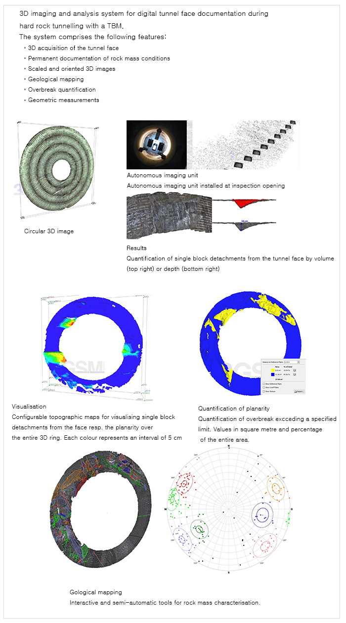 3D Model을 생성하고 터널, 암사면, 지형분석에 용이한 시스템입니다.